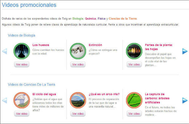 A través de la web, se accede a todos los productos realizados entre un equipo de especialistas de Twig y más de 100 profesores de diferentes disciplinas, que aportan la calidad académica al producto. Las películas, con efectos visuales para estimular el proceso de aprendizaje, pueden ser visualizadas en pizarras digitales, ordenadores y dispositivos móviles.