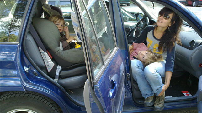 El asiento central es el que menos marea (y el más seguro), así que el hermano que peor lo pasa va ahí.