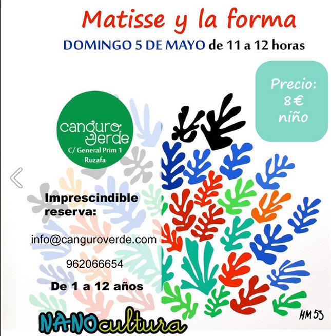 El próximo domingo, en el espacio educativo y creativo El Canguro Verde de Valencia, los niños de uno a 12 años pueden descubrir al pintor Henry Matisse, a la vez que se les permite realizar preciosos dibujos.