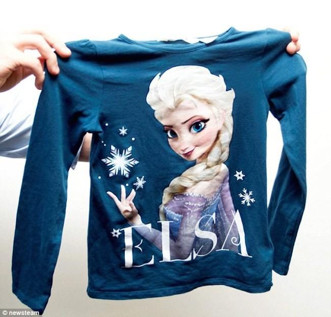 La camiseta que veis en la imagen de arriba ha armado un revuelo en el Reino Unido, y ahora os contaré por qué. No hace falta que os explique que se ha representado a la princesa Elsa (una de las protagonistas de Frozen).