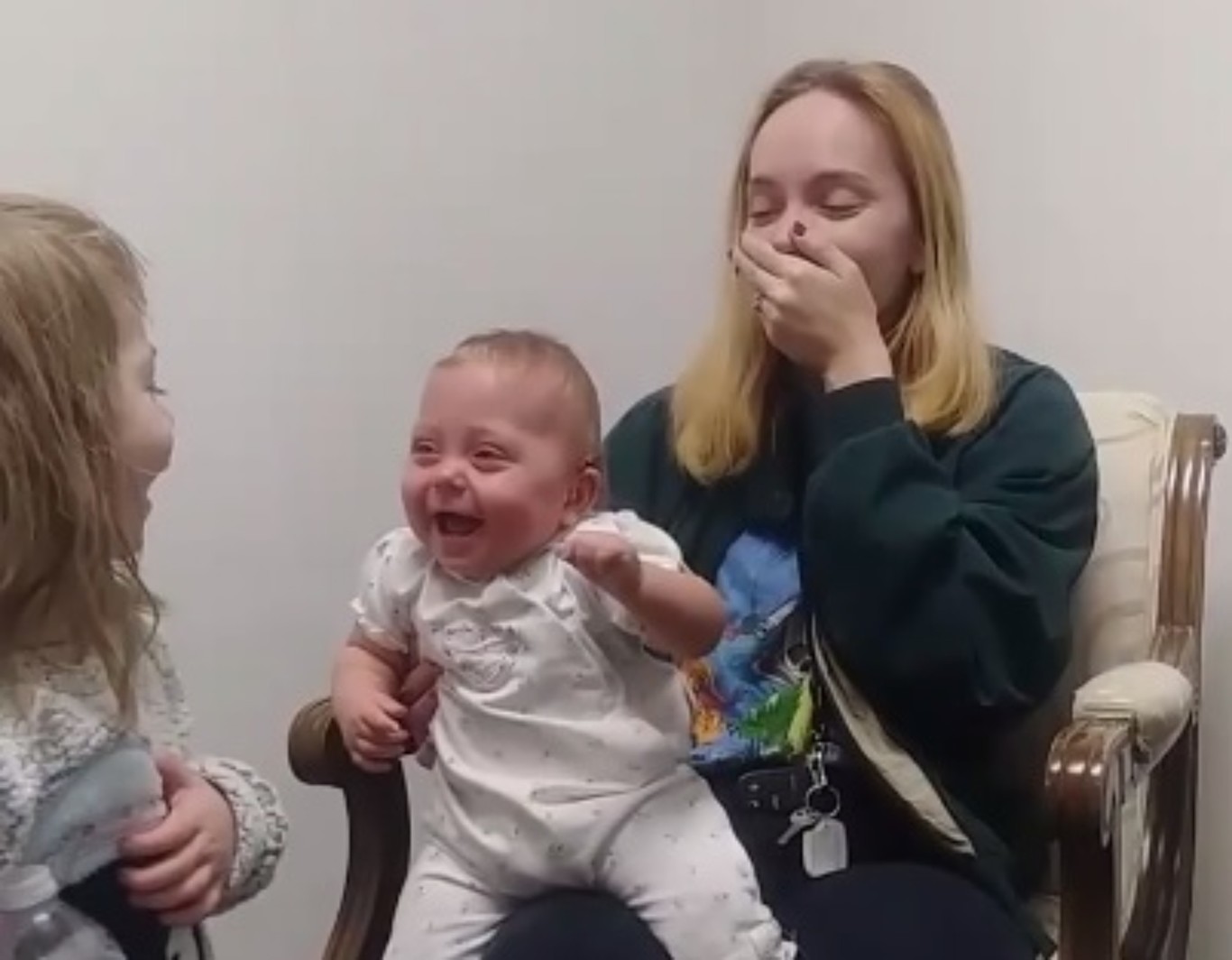 Es emocionante la reacción de la bebé al escuchar a su hermana mayor cuando la llama "Baby sister" (hermana bebé en inglés). Al oírla no puede evitar empezar a reír a carcajadas para sorpresa de la mamá.