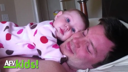 En portada os dejo una cariñosas imágenes de un bebé y su padre durmiendo juntos o eso al menos es lo qué su padre cree, sobre todo porque parece que esté enseñando a su hija a dormirse al modo encantandor de personas, un, dos, tres, chasqueo dedos y te duermes. Estaremos encantados de saber si eso sigue funcionando cuando la niña tenga tres años, le auguro un futuro prometedor si lo consigue.