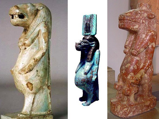 Su apariencia grotesca es probablemente debida a que se pretendía desviar o ‘asustar’ así a los espíritus maliciosos y para otorgarle los poderes de animales tan peligrosos como el hipopótamo, el león, y el cocodrilo, para que ellos actuaran como la protección para las mujeres y sus descendientes.