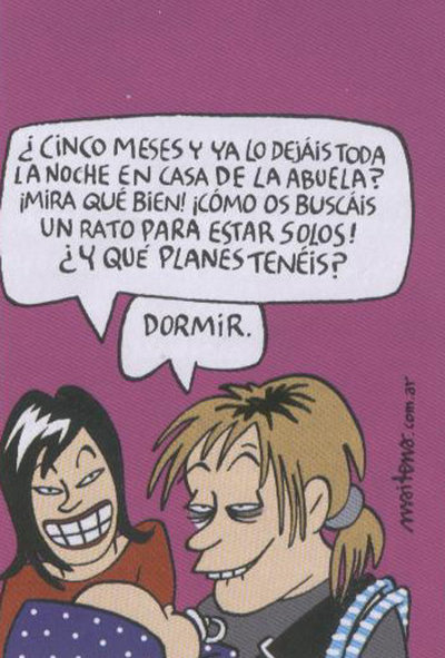 Por eso probablemente muchos papis y mamis se sentirán identificados con esta viñeta de Maitena, que nos muestra cuáles son los primeros planes de la pareja sin el bebé: dormir.