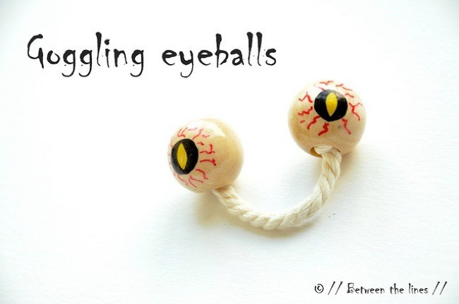En las excelentes imágenes extraídas de la página de Between the line se puede ver el proceso de construcción con rotuladores para decorar, una cuerda y un par de bolas agujereadas que al combinarse con nuestra mano se convierte en un divertido monstruo deseando contar historias.