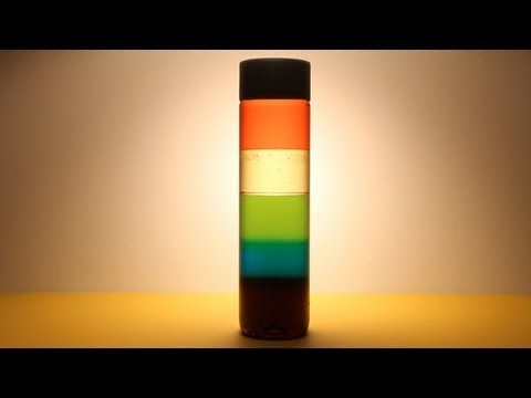 Además de un ejercicio de ciencia, lo que nos propone Bruspup es construir un objeto decorativo basado en apilar líquidos. Como cada líquido tiene una densidad diferente todos ocupan su espacio dentro del recipiente y no entran en conflicto.