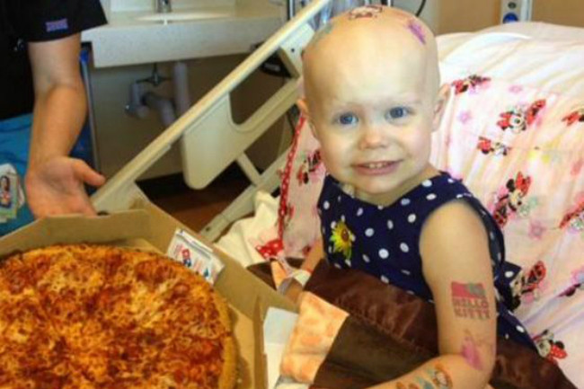 Pero Hazel pudo cumplir su deseo, y como es de esperar compartió las pizzas con los otros niños ingresados en su misma planta. Lauren (la mamá) está encantada y agradecida con las donaciones, y desde su blog, informa también de que Hazel está ya en casa, aunque deberá regresar para continuar su tratamiento en el Hospital.