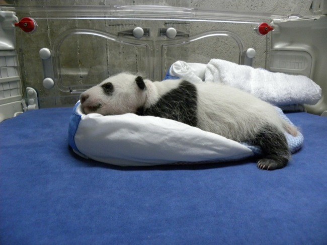 También todos vamos a poder ir a visitar al pequeño, durante los fines de semana, mientras su madre Hua Zui Ba se alimenta y descansa unas horas en el dormitorio interior. La cría, que ya abre los ojos, se irá habituando así de forma gradual a la luz mientras duerme plácidamente en la cuna de madera instalada especialmente para la ocasión en la pagoda, donde ya comienza a gatear con torpeza. No será hasta las navidades cuando dé sus primeros pasos y, a partir de los seis meses, cuando su capacidad motora esté más desarrollada y le permita caminar con seguridad.