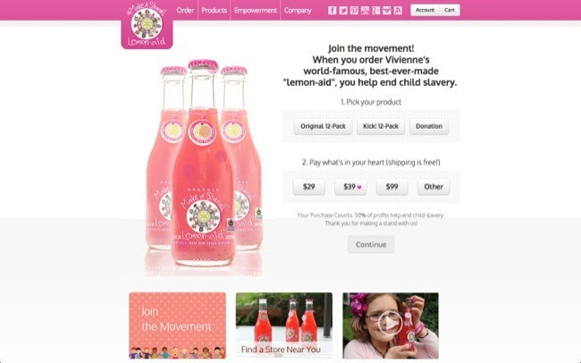 Así que ahora comercializan, en modo donación, botellas de limonada llenas de esperanza y sueños de libertad para los niños. Se pueden adquirir 12 botellas de limonada, orgánica y sin ningún tratamiento químico, desde 29 dólares, sin gastos de envío, o 39 dólares o 99 dólares o hacer una donación. El 50% de los ingresos se los envían a una ONG que lucha contra la erradicación de la esclavitud infantil.