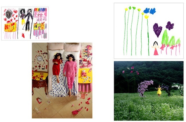 El artista surcoreano Yeondoo Jung lo ha podido comprobar desde 2004 en su serie "Wonderland", en la que unos adolescentes reproducen las historias de los niños de entre cinco y siete años y después él fotografía, con unos resultados preciosos.