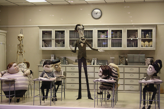 Nada menos que 30 platós utilizados en el rodaje encontraremos al adentrarnos en esta pequeña parcela del maravilloso mundo creado por Tim Burton. Y si nosotros disfrutaremos, los niños se emocionarán al descubrir el aula del colegio New Holand, la réplica de la mesa de Tim Buron, y la increíble marioneta de ‘Sparky’ (que tiene 45 empalmes móviles).