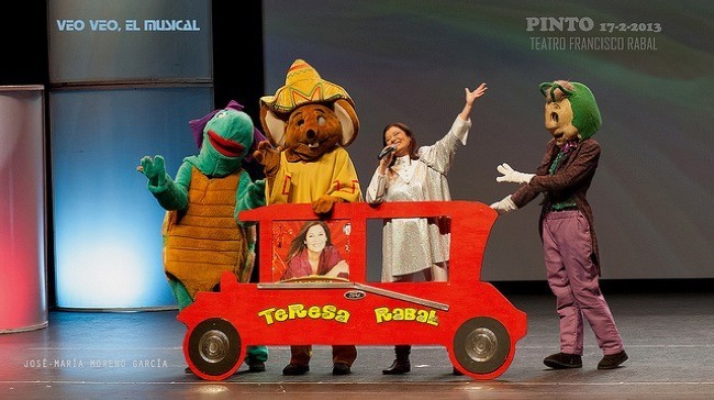 Desde el 1 de noviembre se puede ver en el Teatro Príncipe de la Gran Vía madrileña el espectáculo Veo Veo, El Musical de Teresa Rabal pensado para pequeños y mayores. Y es que Veo, Veo es un circo para tres generaciones: la de ahora y las de entonces, las que formamos los padres y los abuelos de los niños del año 2000. En el espectáculo prima la música en directo y además hay trapecistas, malabaristas, payasos, funambulistas, equilibristas que trabajan con Teresa Rabal ilustrando las canciones.