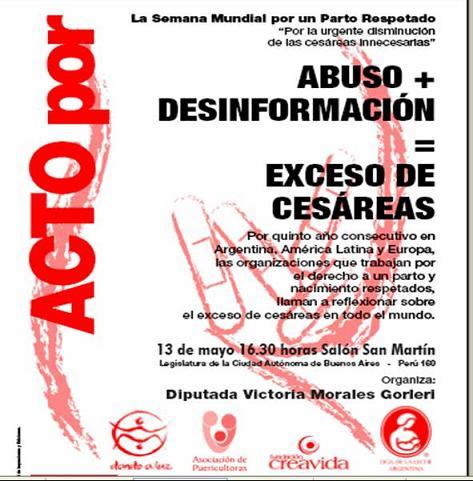 La Legislatura de la ciudad autónoma de Buenos Aires ha dado un paso a favor de la celebración de la Semana del Parto Respetado declarándola un evento de interés y participando en la organización del evento. Éste tendrá lugar mañana día 13 de mayo a las 16:30 en el Salon San Martín de dicha Legislatura y se realizará con la organización de La Liga de La Leche Argentina.