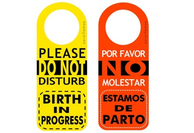 Traer una nueva vida en un ambiente adecuado, con la intervención necesaria (es decir, la mínima), en el que se tengan en cuenta las necesidades de la madre y el bebé. Por eso me han encantado estas etiquetas para colgar en las puertas: "No molestar... estamos de parto".