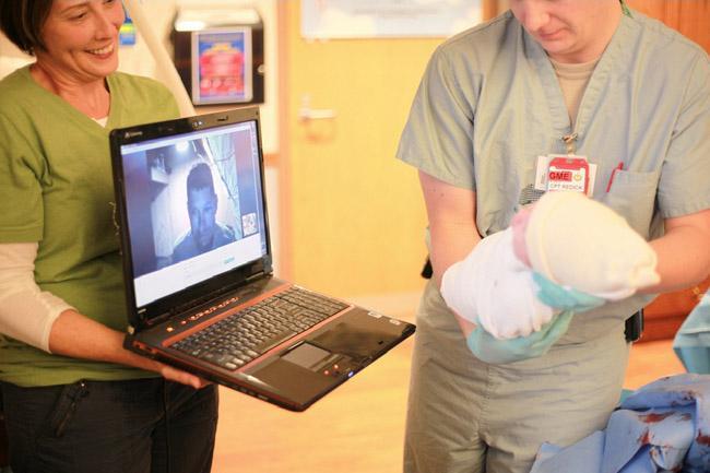 Al menos queda el consuelo de la tecnología que le permite a un padre como Daniel vivir el nacimiento de su hijo Galen aún estando en misión militar en Afganistán.