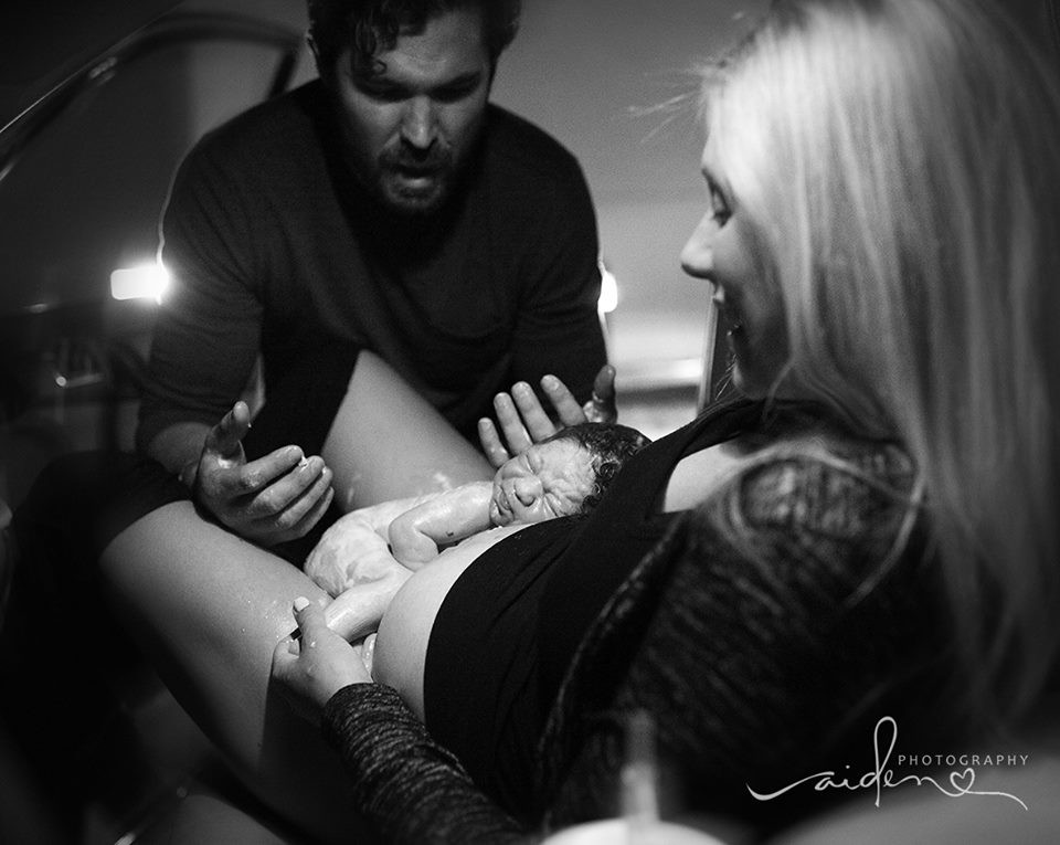 Stephanie estaba allí para capturar el increíble momento. El niño llegó al mundo a las 12:21 am, minutos después de que el coche se detuviera en el parking del hospital.