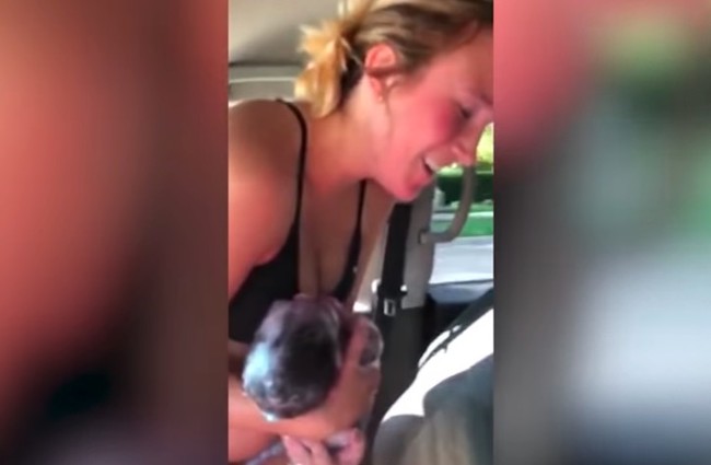 Iban en el coche con tres de sus hijos en el asiento trasero cuando la nueva hermanita no pudo esperar a nacer. Allí mismo, la mujer se pone de rodillas en el asiento del copiloto y en un par de minutos se produce el nacimiento. La madre toma a la recién nacida en brazos y se queda incrédula asimilando lo que acaba de suceder. Al igual que los niños, que lo miran todo desconcertados.
