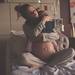 La fotógrafa congeló ese instante justo antes de que la madre diera a luz a su tercera hija. El último abrazo a su pequeña y la última vez que se sentaba encima de su barriga con su hermana dentro.