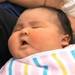 Debido a sus generosas proporciones, la niña usa ropa para bebés de tres meses, que es el peso medio aproximado de un bebé de esa edad o aún mayor.