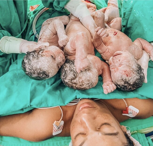 El 26 de enero una mujer dio a luz a trillizos en Brasil, concebidos de manera natural. Lo curioso del caso es que parece que Camila Cassimiro da Conceição, que así se llama esta madre, se supera en cada embarazo: en su primera y segunda gestación tuvo un bebé, gemelos después y trillizos en la última, por lo que ha formado una familia muy numerosa.