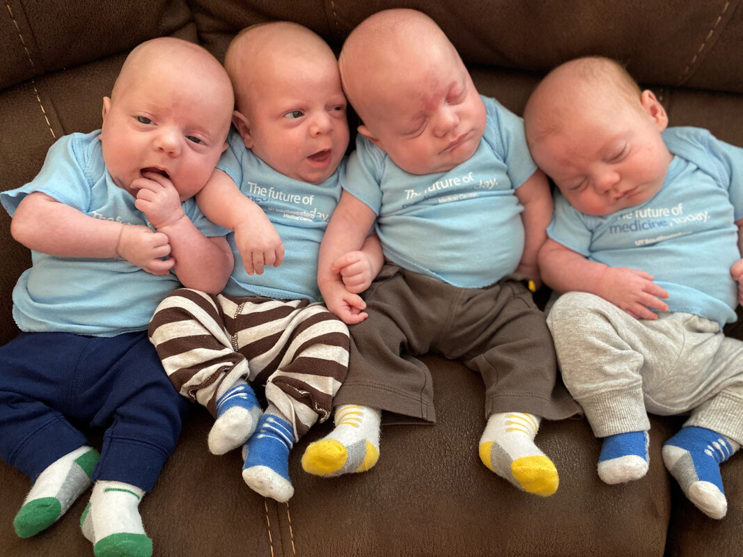 Pero la ciencia se equivocó, ya que además de los recién nacidos, tiene un hijo de tres años, Ryan. Sus hermanos, Austin, Daniel, Jacob y Hudson pesaron entre 1,587 y 1,950 gramos. Permanecieron en la UCIN para ganar peso, mejorar la capacidad de respiración y aprender a alimentarse por un biberón. El primero de ellos se fue a casa a la semana de nacer y el último solo siete semanas después.