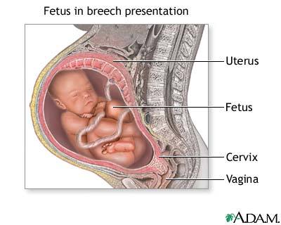 En las últimas semanas los bebés se giran en el útero para quedar en posición cabeza-abajo, sin embargo un 3-4% de los bebés no lo hacen y en el momento del parto presentan una posición "de nalgas", con los pies y las nalgas hacia abajo.
