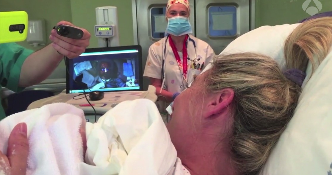 Un ordenador y una webcam y un equipo técnico informático del centro hicieron posible que Carlos acompañara a su mujer Ruth en un momento tan especial. De hecho el 12 de Octubre es un hospital que fomenta y favorece la presencia del padre el parto, incluso cuando se trata de cesáreas programadas.