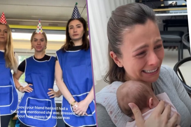 El vídeo, publicado en TikTok por una de las amigas, cuenta con más de diez millones de vistas y va acompañado del texto: "Tu amiga acaba de tener un bebé y mencionó que estaba estresada por lo desordenada que estaba su casa".