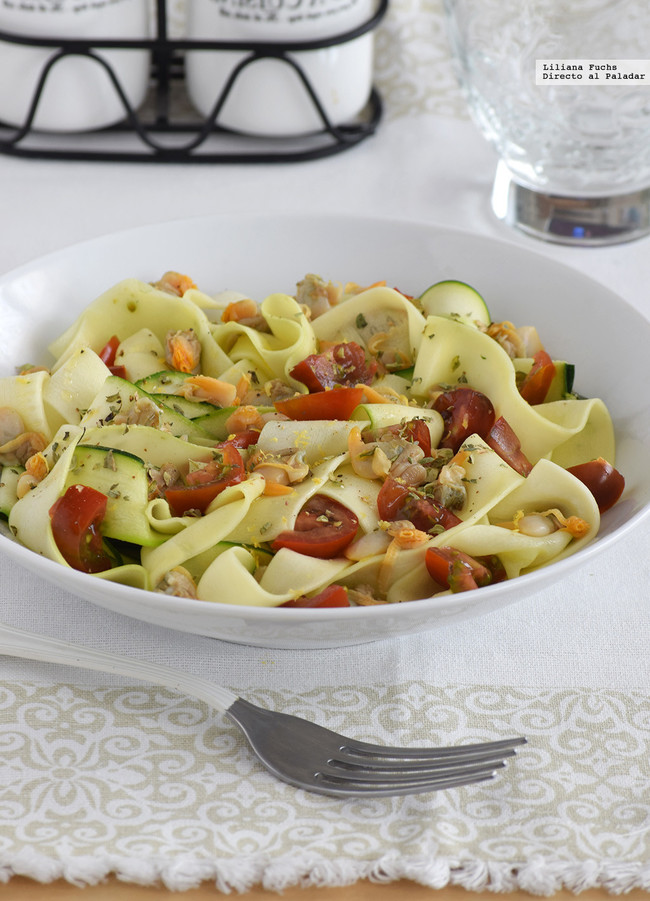 La elaboración de esta receta es muy rápida y sencilla, y el truco está en cortar los calabacines en tiras del grosor adecuado, y en darles una correcta cocción al dente. Podemos combinarlos con tomatitos cherry, berberechos (que aportan una buena dosis de hierro) y un puñadito de frutos secos para obtener un resultado perfecto y muy nutritivo.