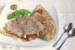Volvemos a untar un poco más de dulce de leche sobre la mitad y doblamos de nuevo la crêpe sobre sí misma, sirviendo inmediatamente para que se pueda comer mientras esté templada para que el dulce de leche esté más fluido.