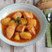 Dejamos cocinar durante dos o tres minutos para que el salmón quede bien jugoso y apagamos el fuego, dejando tapada la cacerola y llevándola a la mesa donde la serviremos inmediatamente para tomar este guiso bien caliente.