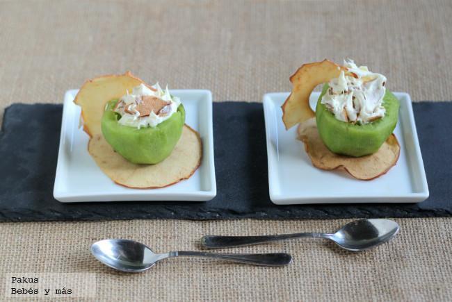 Conseguir que los niños se acostumbren a tomar más fruta ha sido siempre una obsesión para mí ya que hasta bien mayor yo no comía suficientes piezas, y no quería que mi manía perjudicase a mi hijo al que eduqué siempre pensando en su bienestar futuro. Una de las técnicas que más me ayudó a conseguirlo era mezclar distintos ingredientes en platos atractivos, como en esta receta de kiwis rellenos con mascarpone y crujiente de manzana.