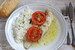 Después añadimos un chorrito de aceite de oliva por encima del pescado. Por otro lado, cortamos el tomate en rodajas finas y lo ponemos encima de los lomos de pescado. Espolvoreamos el conjunto con un pellizco de hierbas (tomillo, orégano, provenzales o las que os gusten)