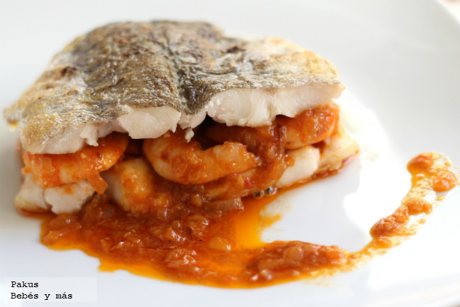 Esta receta de merluza rellena de langostinos en salsa es estupenda para plato principal para comer a mediodía, y lo podéis acompañar con una ensalada de hojas verdes y una pieza de fruta para completar el menú. Ya veréis como os encanta.