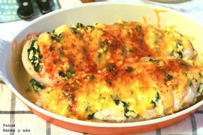 Cómo hacer pechugas de pollo rellenas de requesón y espinacas