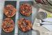 Precalentamos el horno a 220º. En una bandeja de horno, ponemos papel de hornear y colocamos las pizzetas con algo de separación entre ellas. Sobre cada una de ellas ponemos una cucharadita de tomate concentrado y la extendemos con el dorso de la propia cucharilla dando movimientos circulares.