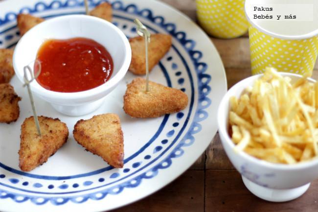 En Bebés y más | Tiras crujientes de pollo rebozadas en ganchitos de queso. Receta
