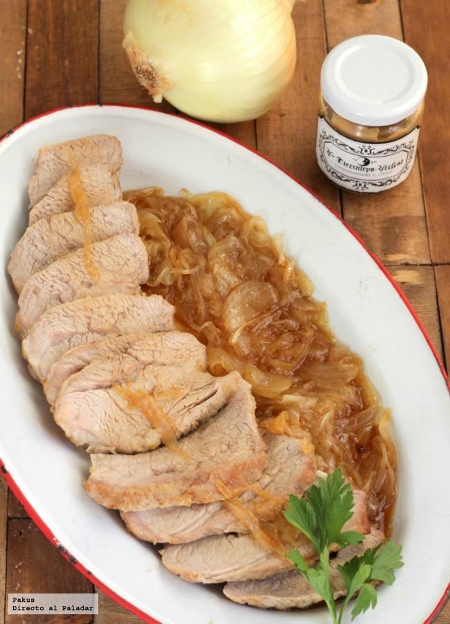 Ternera blanca asada con salsa de cebolla confitada a la mostaza, porque después de dos recetas ligeras, tocaba una de las de chuparse los dedos.