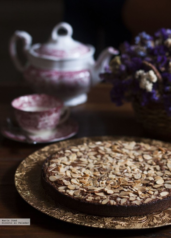 Pastel de almendra y chocolate al caramelo: esponjoso, húmedo, con un delicioso toque de almendra que compensa perfectamente con el chocolate al caramelo. No quedarán ni las migas.