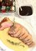 Después, dejamos reposar la carne 15 minutos dentro del horno y la fileteamos. Con los jugos de la cocción y un poco más del adobo que nos haya sobrado, hacemos una salsa, dejando que cueza en un cazo con unas ramitas de tomillo durante 5 mintuos. Servimos un cordón de salsa sobre la carne y el resto en salsera aparte.