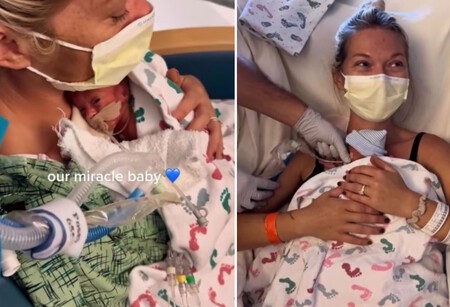 Tres días después, pudo abrazar a su otro bebé, Brooks, con menos de un kilo de peso.
