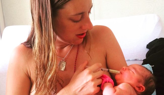 Os dejamos con la imagen que puede suponer una ayuda a algunas madres si el bebé no se coge bien al pecho o duerme muchas horas de recién nacido: darle el calostro con jeringuilla y no dejar que se pierda ese "oro líquido".