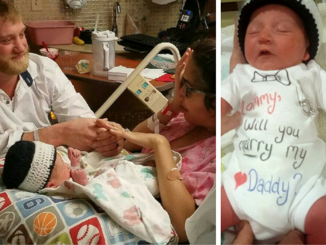 Al nacer el bebé, pidió a las enfermeras colocarle un body que había escrito con el mensaje: "Mami, ¿quieres casarte con mi padre?". Al verlo, la madre no pudo contener las lágrimas. Una bonita idea de la que seguro muchos tomaréis nota.