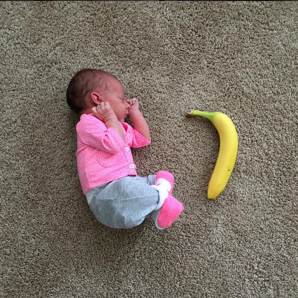 Una idea genial de ir registrando cómo crece el bebé es la que ha tenido Jen (@herewegoajen), una madre que registra el crecimiento de su bebé comparando su tamaño con objetos cotidianos.