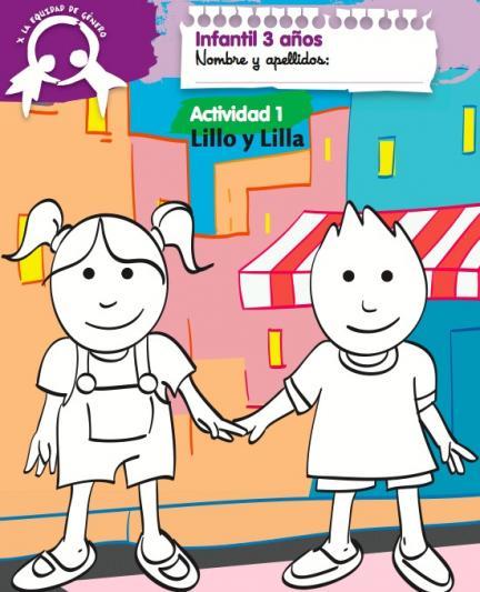 Por ejemplo, las fichas para tres años están protagonizadas por Lillo y Lilla, dos amiguitos que van al mismo colegio y que viven en un país llamado equidad. A los dos les encanta jugar y divertirse. A Lilla le gustan las pelotas y se lo pasa genial cuando tiene una. ¿Por qué tiene que haber juguetes para niños y juguetes para niñas? A Lillo le gustan las mariposas y se divierte buscándolas. También juegan juntos, cantan y bailan.
