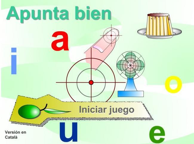 Se trata de "Apunta bien", un juego online que encontramos en la versión en castellano o en catalán, y mediante el cursor y la barra espaciadora los peques han de perseguir con su objetivo determinados objetos, alimentos, animales... para intentar dar en la diana.