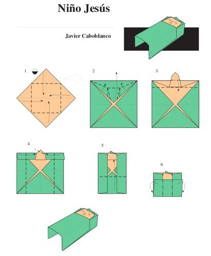 Desde aquí podemos descargar el documento en pdf., con la plantilla para cada una de las figuras del belén. Podemos seguir las instrucciones paso a paso para cada figura, seguro que los más acostumbrados a la papiroflexia lo encontrarán muy sencillo.