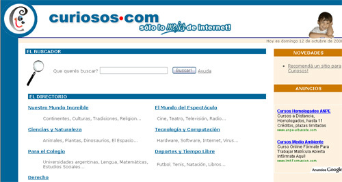 Curiosos.com es una especie de buscador seguro para niños, en el que el acceso a los contenidos para adultos está restringido, convirtiéndose en una herramienta segura. En concreto, lo que encontraremos es un directorio de páginas web según lo que estemos buscando en Internet, con todas las referencias aptas para toda la familia.