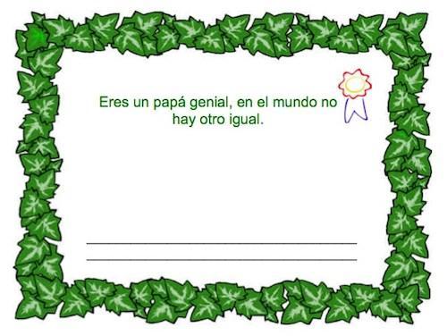 También en Actiludis hallamos otro modelo de diploma para el Día del Padre. Si el que felicita aún es un bebé, en lugar de firma podemos hacer que deje su huella de la manita o el pie.