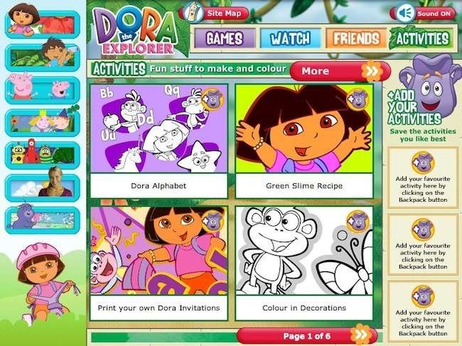 En las webs de Dora la Exploradora además conocemos al resto de personajes que acompañan a la pequeña de siete años en sus aventuras. Eso sí, en el sitio aparecen otros de los personajes favoritos de los niños, así que tendréis que escoger bien...